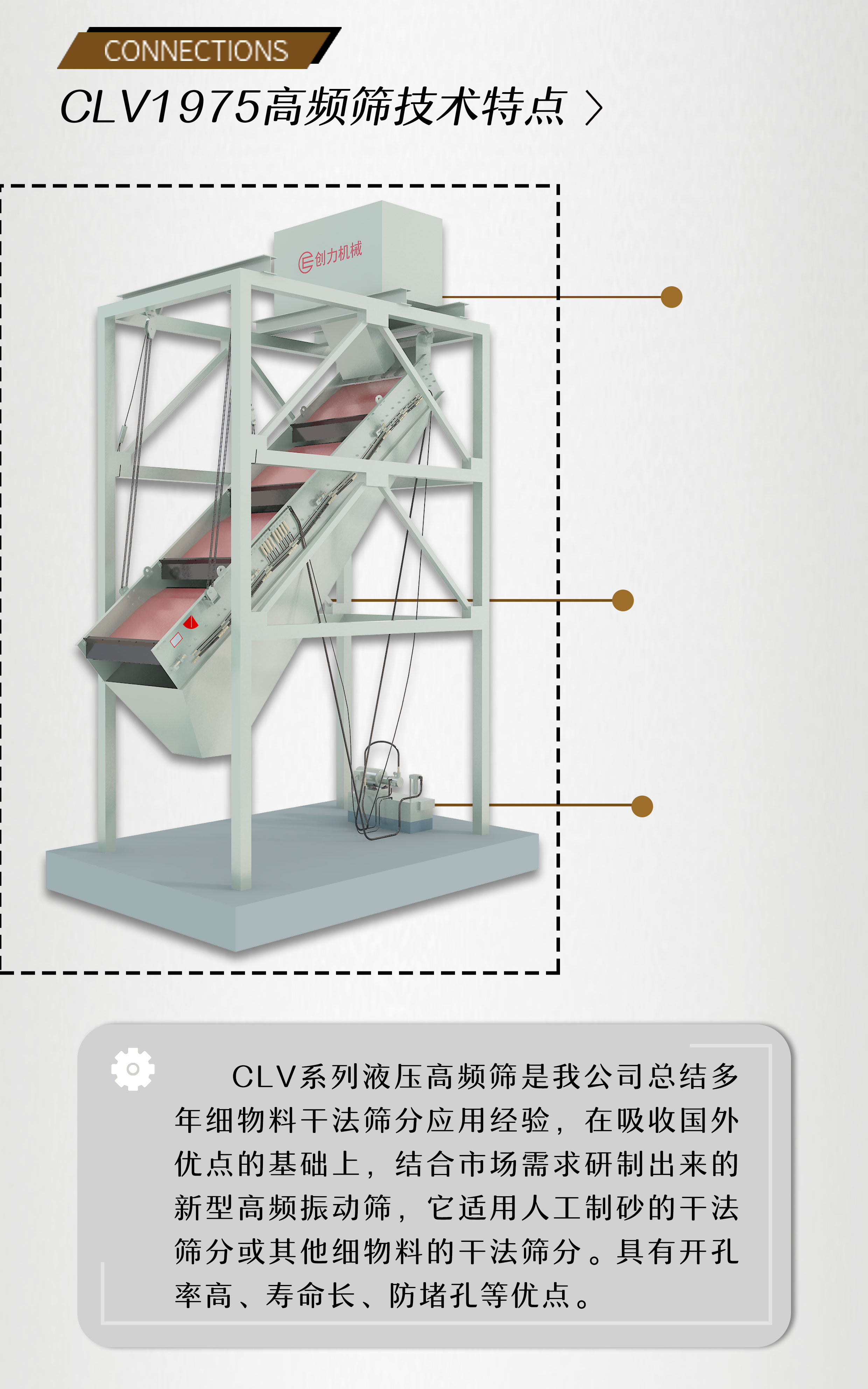 CLV系列液壓高頻篩是我總結多年細物料干法篩分應用經(jīng)驗,在吸收國外優(yōu)點的基礎上,結合市場需求研制出來的新型高頻振動篩,它適用人工制砂的干法篩分或其他細物料的干法篩分。具有開孔率高、壽命長、防堵孔等優(yōu)點。