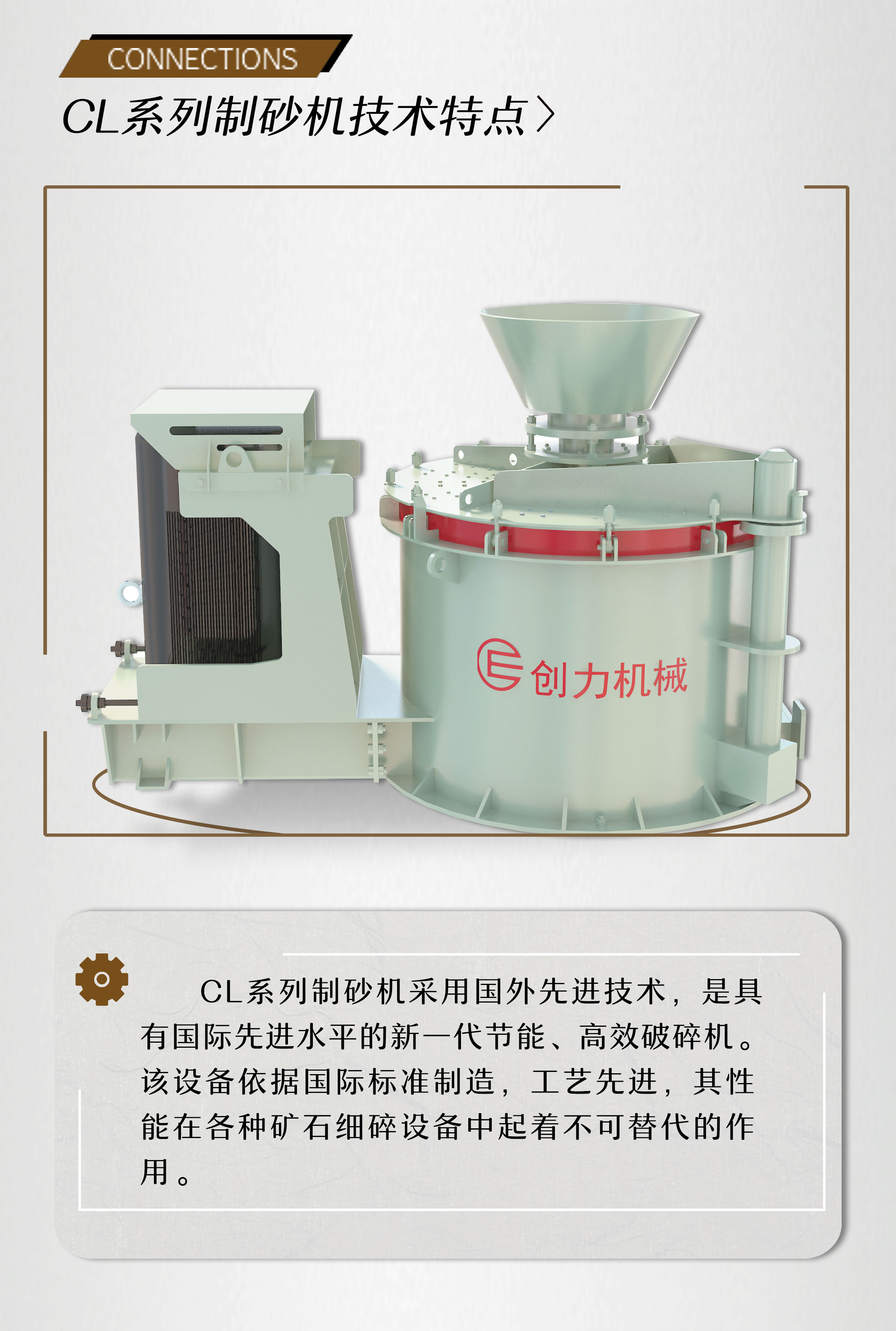 CL系列制砂機(jī)是在運(yùn)用國(guó)外先進(jìn)技術(shù),具有國(guó)際先進(jìn)水平的新一代節(jié)能、高效破碎機(jī)。該設(shè)備依據(jù)國(guó)際標(biāo)準(zhǔn)制造,工藝先進(jìn),其性能在各種礦石細(xì)碎設(shè)備中起著不可替代的作用。