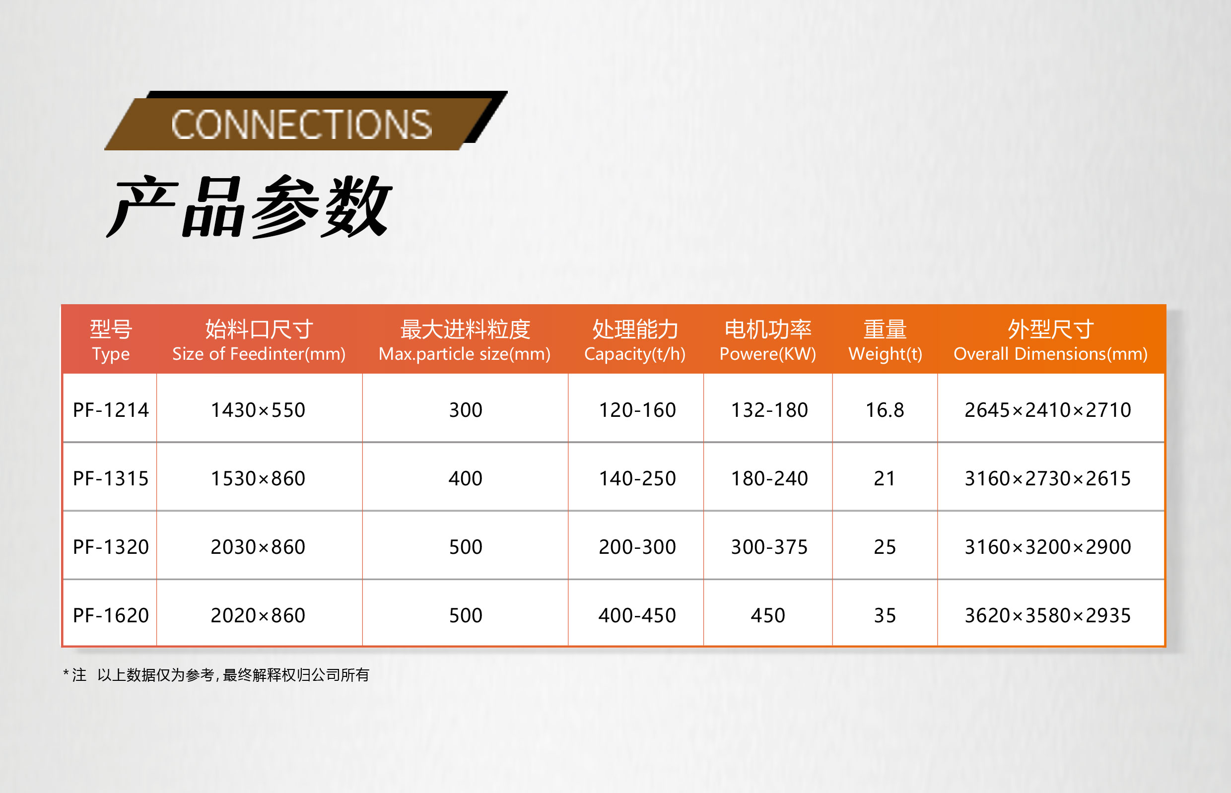 PF反擊式破碎機(jī)技術(shù)參數(shù)