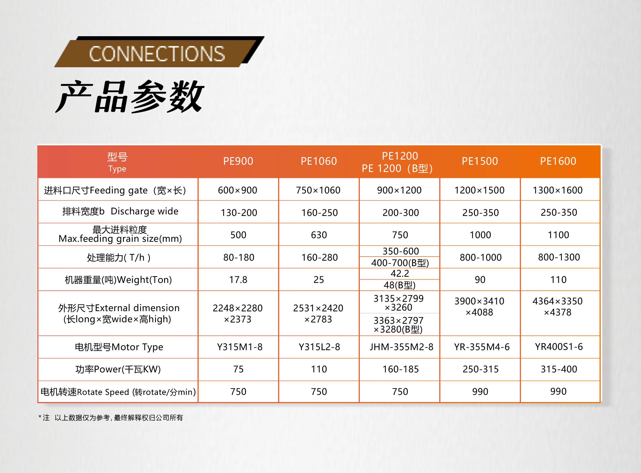 最大進料粒度(mm) | 500 | 630 | 750 | 1000 | 1100 |